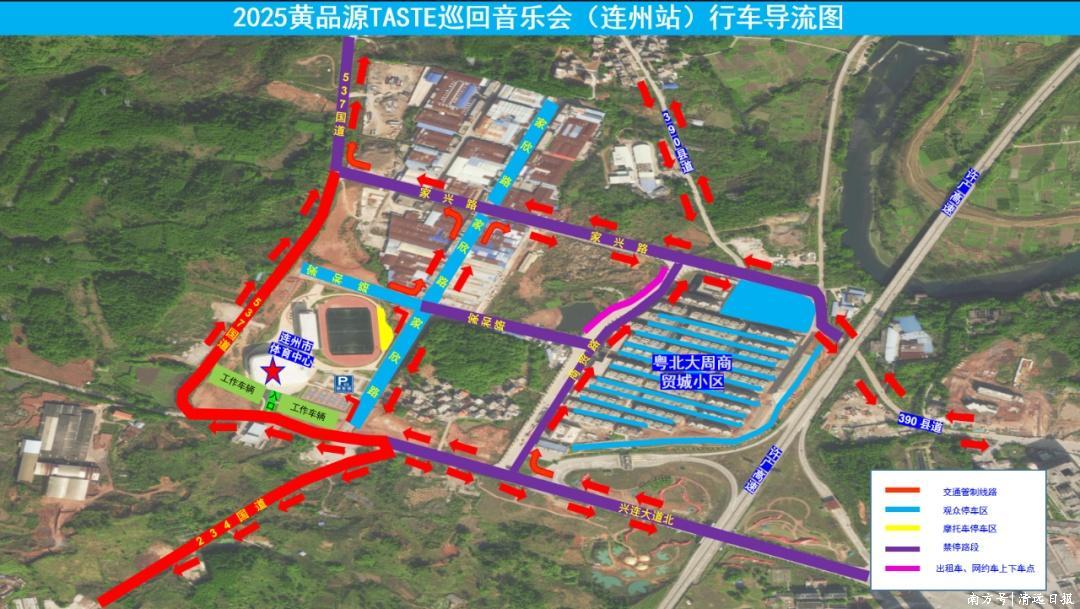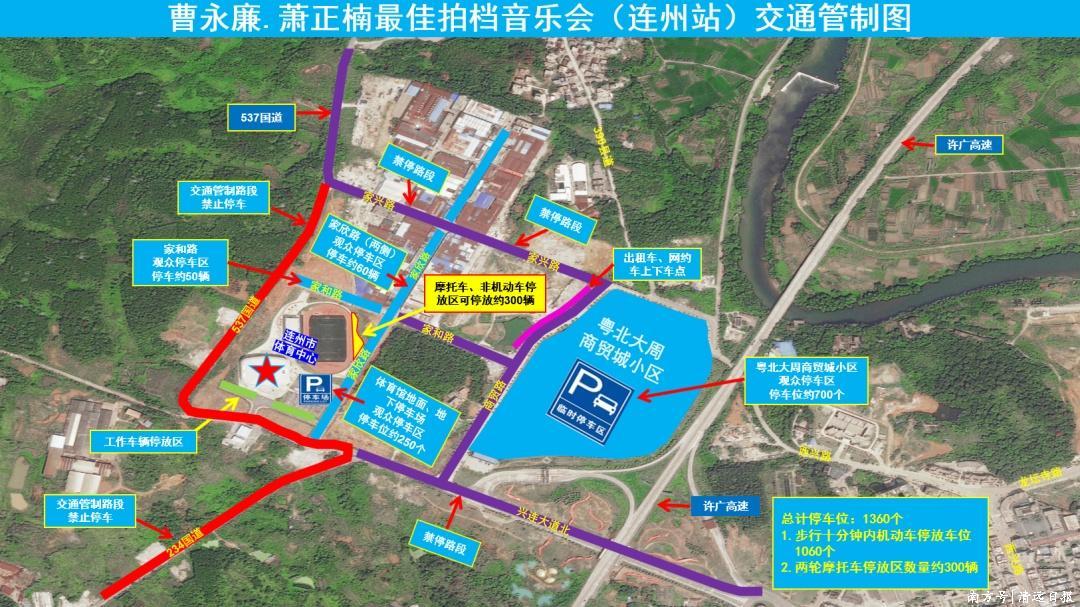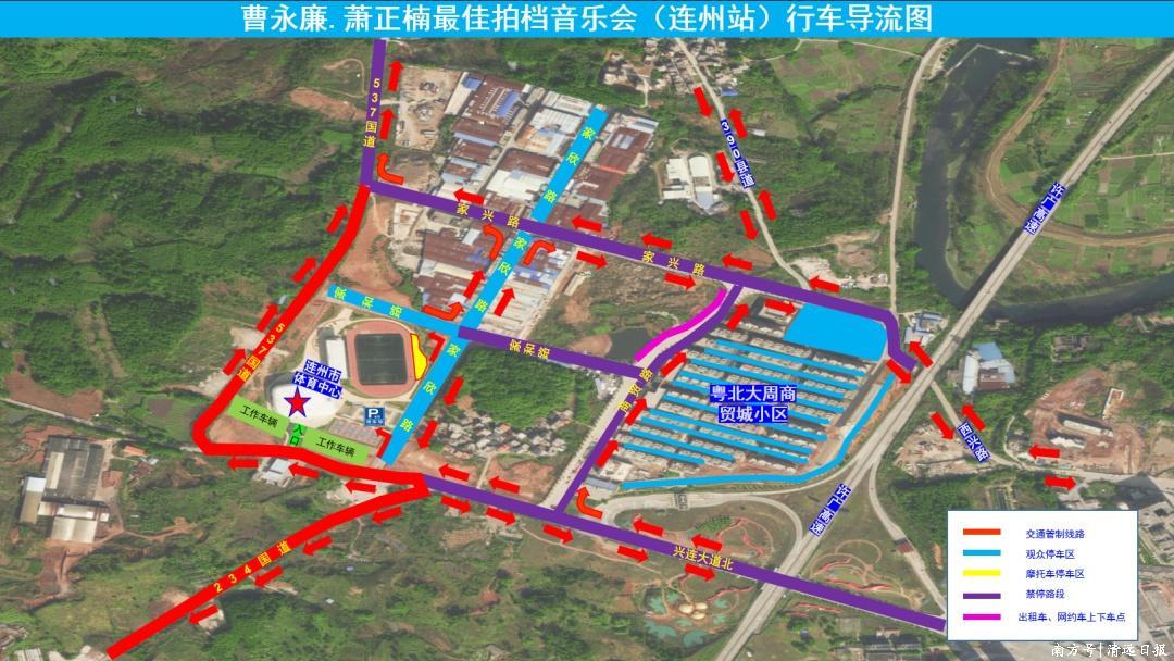 (三)从537国道前往观看演唱会的观众车辆,需绕道往家兴路、商贸路至粤北大周商贸城小区停车区有序停放;从234国道前往观看演唱会的观众车辆,需绕道往036乡道、兴连大道北至连州市体育中心周边停车区有序停放。