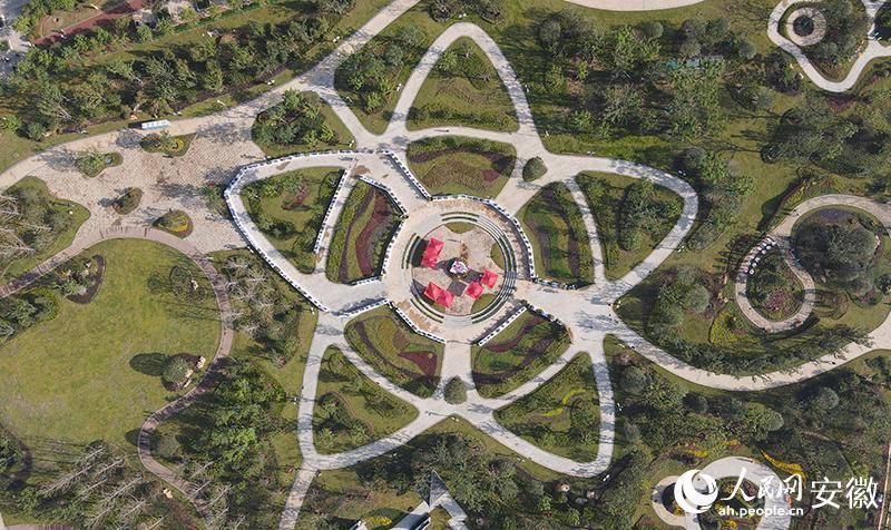 航拍阜阳花博园内的花韵广场。人民网记者 王晓飞摄