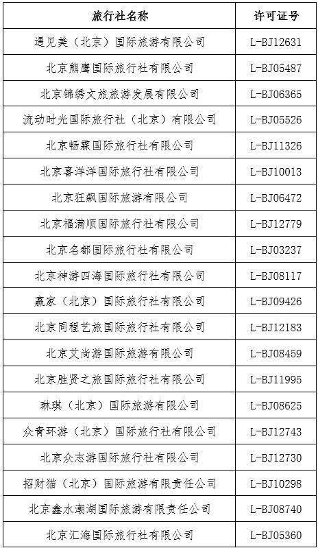 根据我市旅行社涉诉情况统计,现公示10月27日至11月2日,北京市投诉量排名前十五旅行社名单如下(含投诉量相同旅行社共20家):