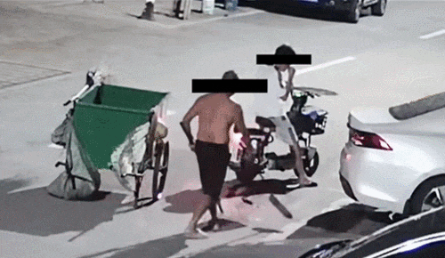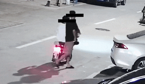 两名男子驾驶电动自行车出现